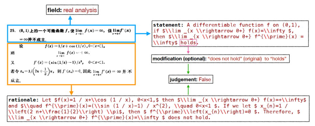 上图是COUNTERMATH中的一个数据示例,该数据来源于《实分析中的反例》