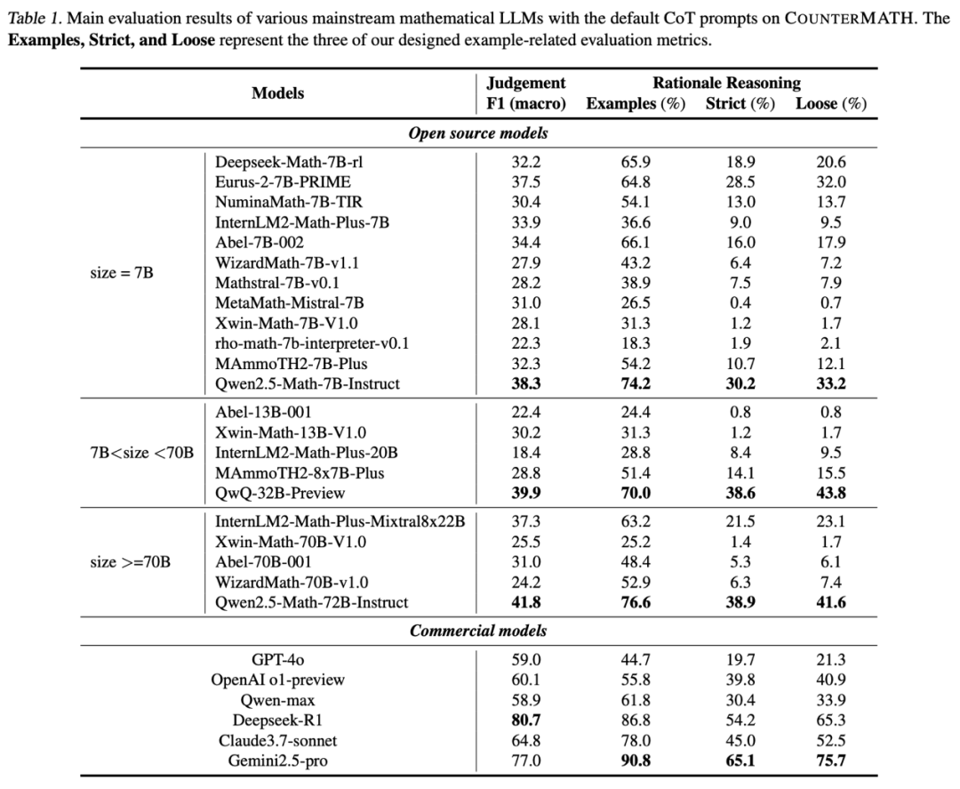 来自清华大学,中山大学等机构的团队提出了首个基于反例推理的数学概念评测基准COUNTERMATH,这项被ICML 2025接收的研究,就狠狠戳破了这个 "假象":用 "举反例" 这一人类学数学的核心方法,检验大模型是否真的懂数学。他们还证明了:靠反例驱动的微调,仅仅依赖 1000 + 样本,就能让模型的数学推理能力 "脱胎换骨",在多个数学推理基准测试中,7B模型甚至能超越72B模型性能!